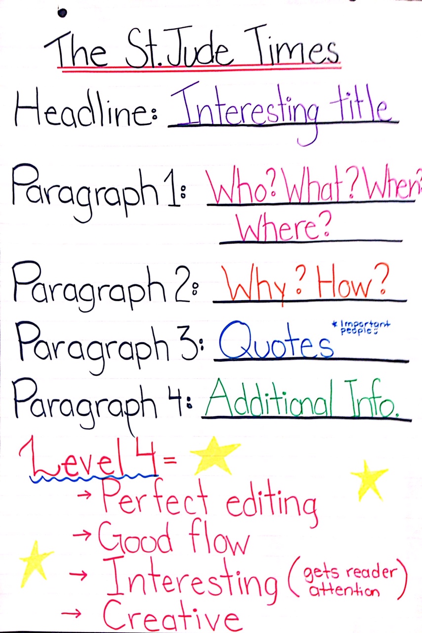 In language, we took our brainstorm for the science fair news report and we created a rough copy. The rough copy is due tomorrow so that the students can work on editing and the final draft. Here is an anchor chart to help with creating a successful news report.
